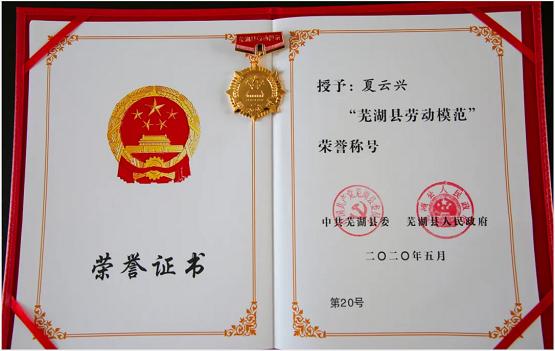 5月19日,芜湖县第一届劳动榜样表扬年夜会盛大举办,颠峰教导开创人、殷港小镇文化倡议人、全国自强榜样夏云兴荣获芜湖县劳动榜样称号。