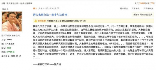 前几日,马云在阿里内网发贴号令全部阿里员工一路解决云南人象冲突的消息曾激发存眷。马云在这篇题为《请大师想措施一路介入这件事》的帖子中道:“我感到须要对年夜象进行维护,也要维护好村平易近的好处,也要想出一个可连续成长的措施。”这也折射出当前亚洲象与人类难以***共存的题目亟待解决。