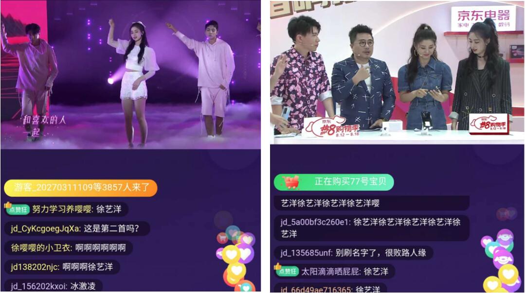 综艺,正乘风破浪地驶向第一个风口——电商直播。京东联袂北京卫视的结合直播,此前打破了传统综艺宣发模式,此次也冲破了现有直播场景和娱乐场景的合作模式。人气明星们的互动逗哏,不输于现场的表演舞台,欢喜有趣的带货流程......充足开释了粉丝对明星带货的爱好。打开直播界面,网友们纷纭留下“支撑国产”、“666”、“好听”等留言,评论区更是一度被应援粉丝们猖狂刷屏,直播氛围热烈活泼。
