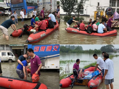 在得知连日的强降雨,使得巢湖水位猛涨的情形后,贝乐康老板寿云峰当即决议组织人手,筹集救灾物质,并自带一艘冲锋艇,向受灾群众伸出援手。