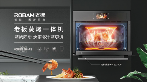 本年,老板电器基于对中式烹调技法和文化的深刻研讨,提出中国新厨房“更强机能、更多功效、更优空间”的“三更”尺度。在此基本上,老板电器以“珐琅更耐用”、“智能更高端”为请求,界说并研发老板中式蒸烤一体机,以“高温蒸、加湿烤、多段烹调”三年夜焦点功效实现“蒸烤同步,烤更多汁蒸更透”。同时,搭配应用能耐500℃高温的星空蓝珐琅内胆,搭载自立研发的ROKI智能烹调体系和触摸彩屏,发明性地解决中式烹调中蒸、烤的烹调困难,知足中国厨房的需求。