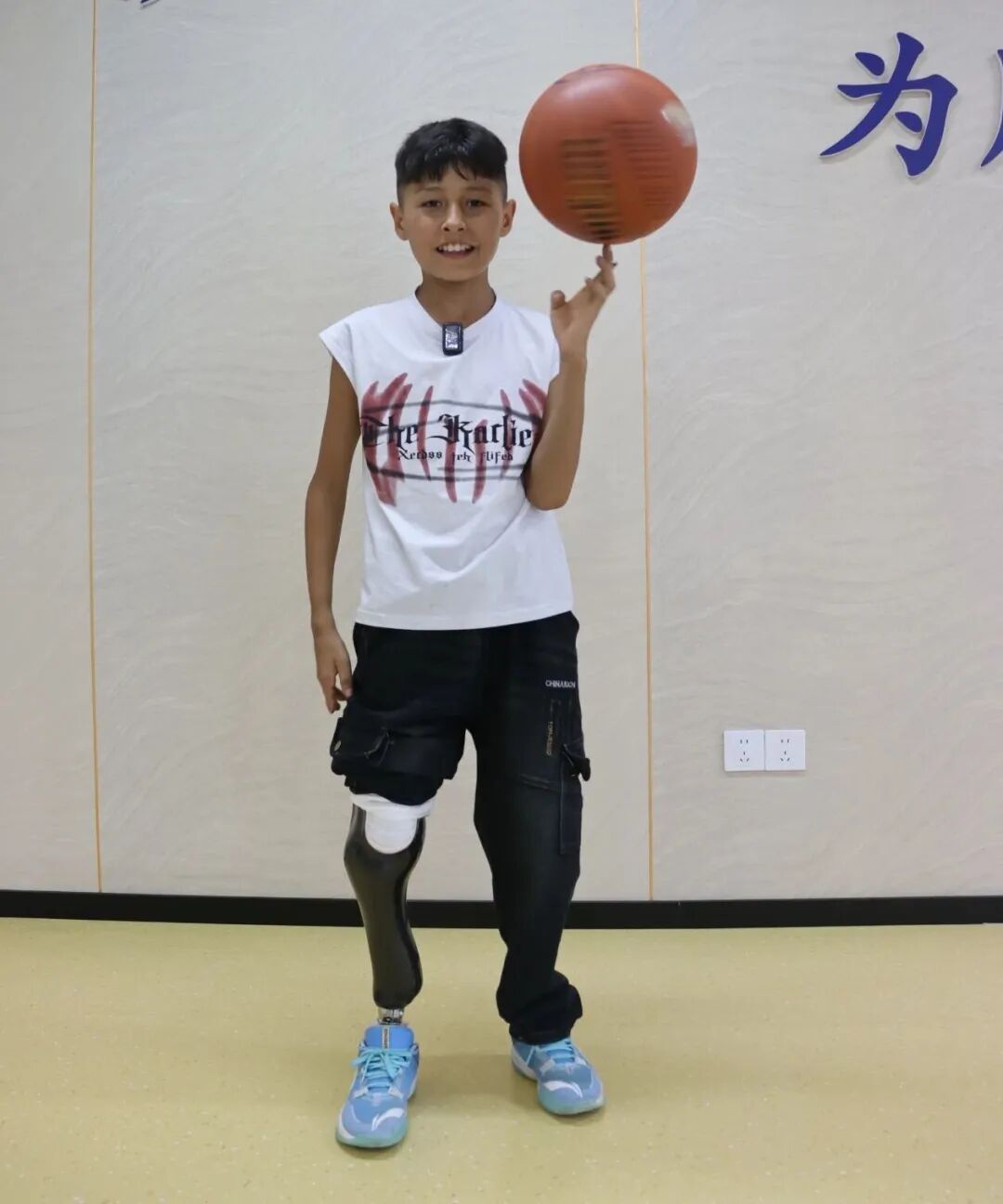新义肢轻便、弹性好、不再磨腿,让他在球场上运球、跳跃、投篮更加自如,每一次动作都充满力量与自信。