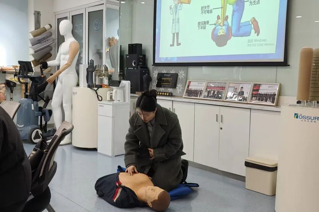 讲师结合真实案例,详细讲解了常见突发事件的急救知识与紧急救护流程,首先系统讲解了心肺复苏(CPR)的操作流程。包括30次胸外按压配合2次人工呼吸的循环操作,五组一循环,直至患者恢复生命体征。
