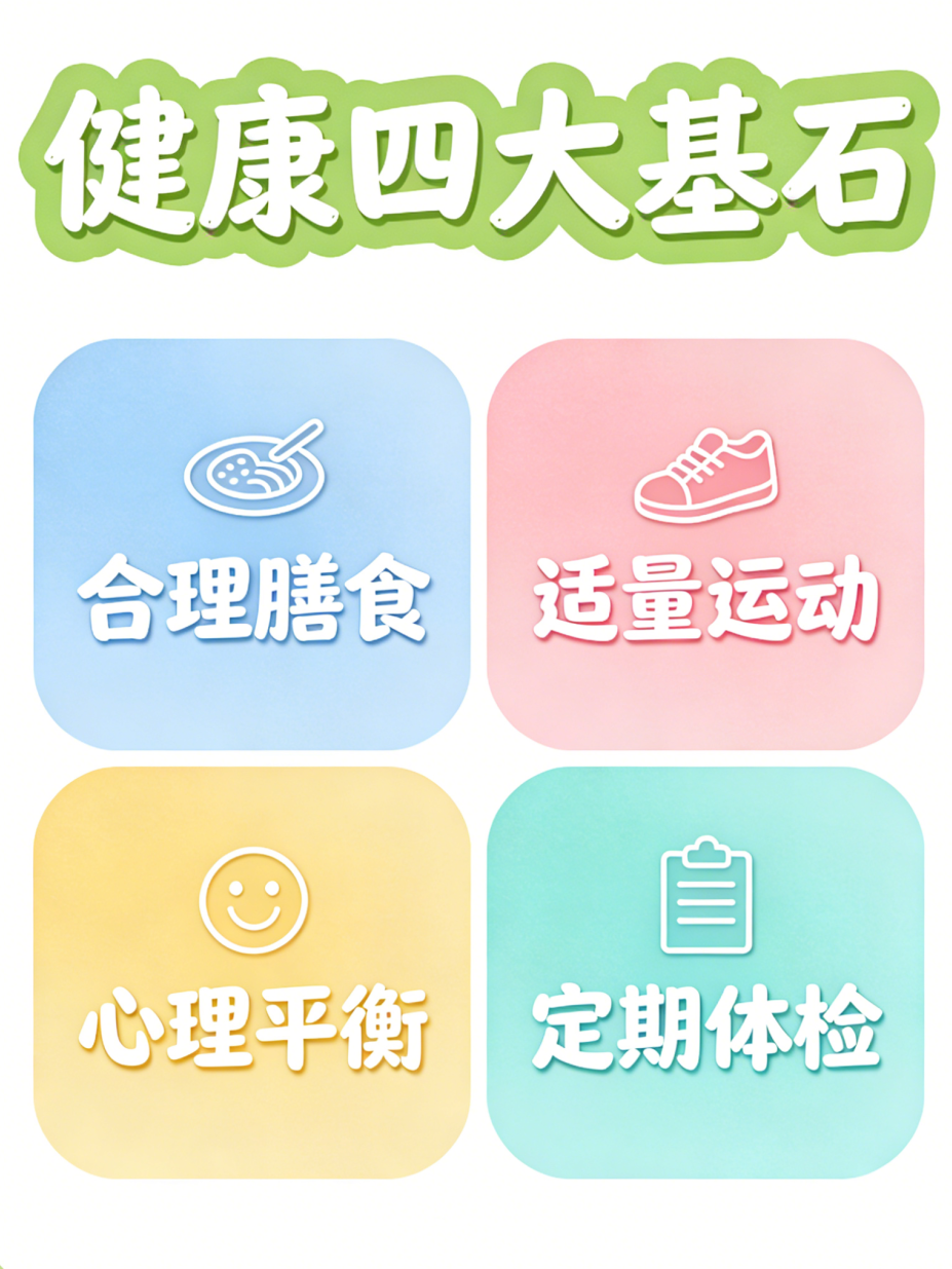 讲师特别引用了国家卫健委提出的“健康四大基石”——合理膳食、适量运动、心理平衡和定期体检,为大家梳理了全方位的健康养护方向。