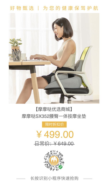 上一天班,感觉身体被掏空?坐上这个摩摩哒腰臀一体按摩坐垫恢复到元气满满的状态。了解更多的产品信息,敬请关注微信小程序摩摩哒优选商城。