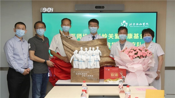 圆心科技副总司理、圆心惠保CEO彭煊代表北京圆心科技有限公司,为北京三声援鄂医疗队赠予了刻有“弘扬抗疫精力 护佑国民健康”的抗疫好汉雕像和鲜花。第三个中国医师节在如许特别的一年里如期而至,圆心科技盼望经由过程鲜花向北京三声援鄂医疗队和宽大大夫群体表达感激之情,感激他们一向苦守护佑性命的最火线;用抗疫医师群像雕塑表达对他们的尊重,敬他们逆行而上的好汉主义精力。