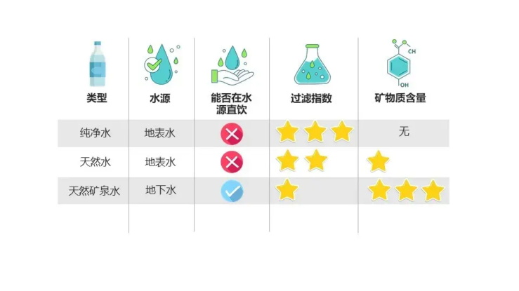 由于既不须要产业过滤也不须要额外添加矿物成分,所以更接近水的自然状况,不仅口感清冽,在解渴的同时身材还能弥补到有益的微量元素。