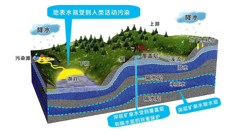 在地下水的分类里面,有个品类更为优质,那就是真正的“深层矿泉水”,深矿泉到达了通俗矿泉水的尺度的同时,还持续向下渗入更深的岩层,由于渗入的深度很深,渗入时光甚至长达几十年之久,在此进程中不仅能更好地过滤失落水中的杂质同时还能消融更多的矿物元素,让矿物元素成分更丰盛、更均衡,口感更好。